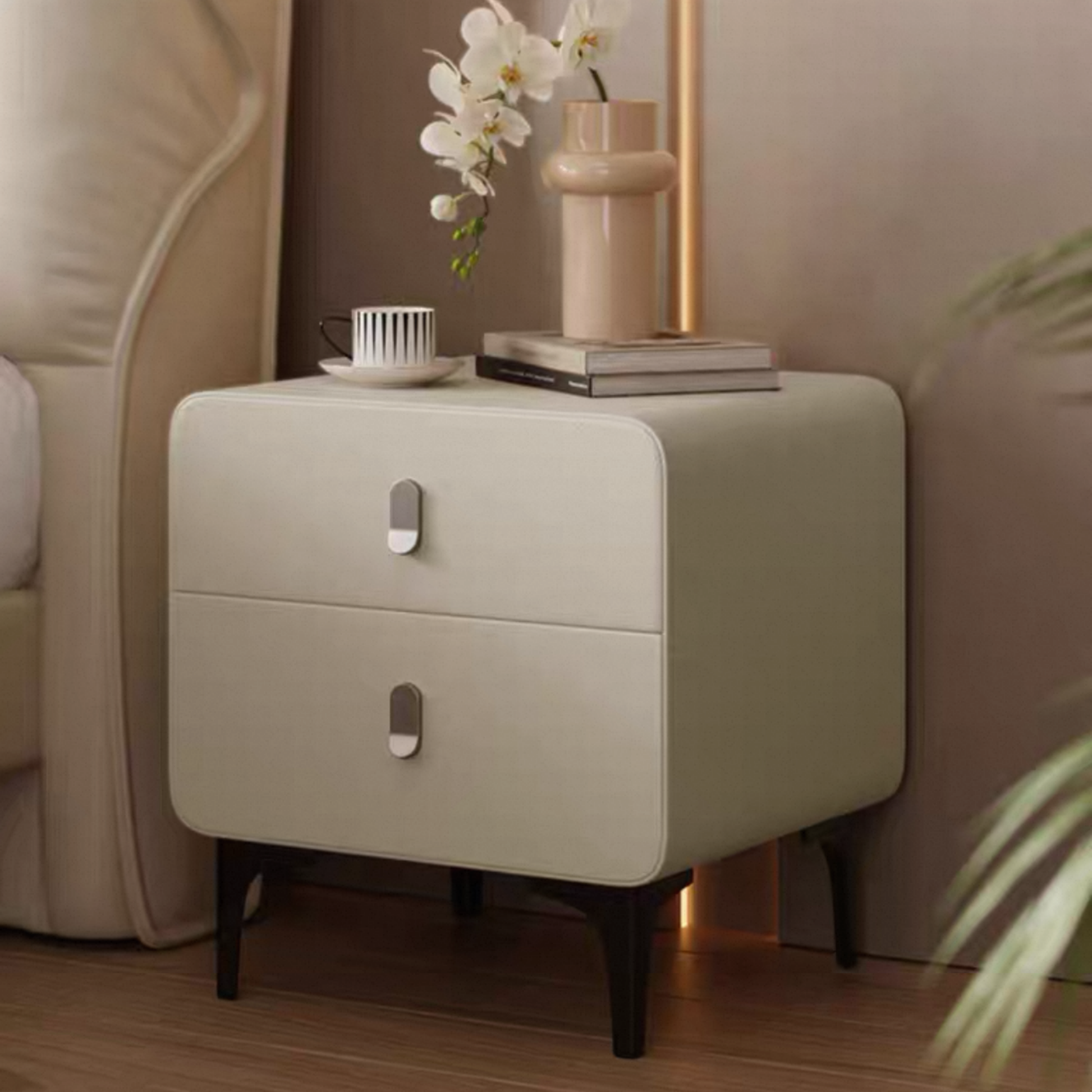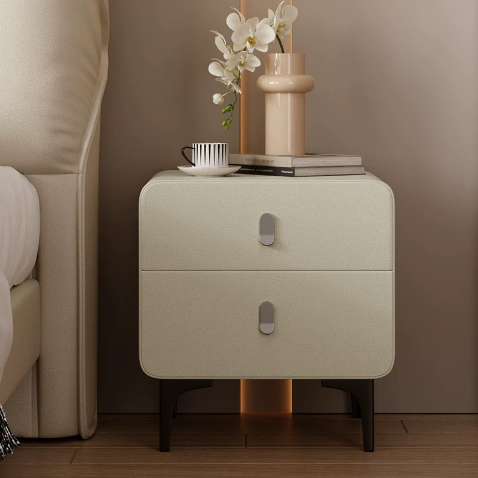 ตู้ข้างเตียง RL0129 Material : Leather + metal high legs + solid pine wood drawers