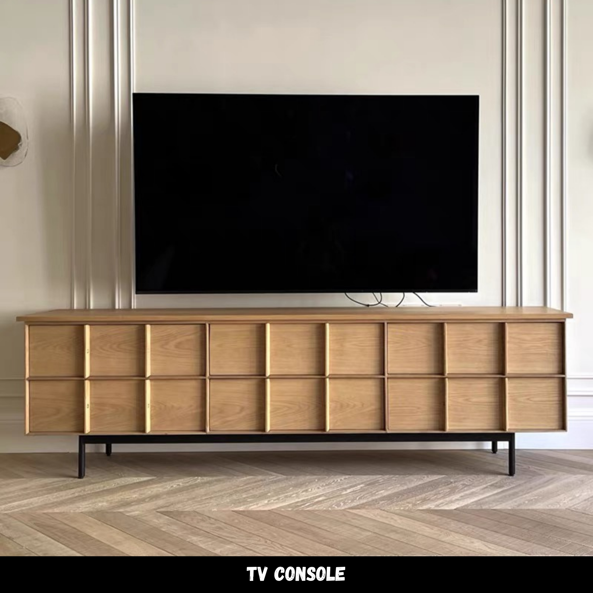 ตู้วางทีวี ( TB404 ) Crafted with natural wood texture and sleek metal legs Spacious design — perfect for storing essentials in style A timeless piece that complements any modern living room