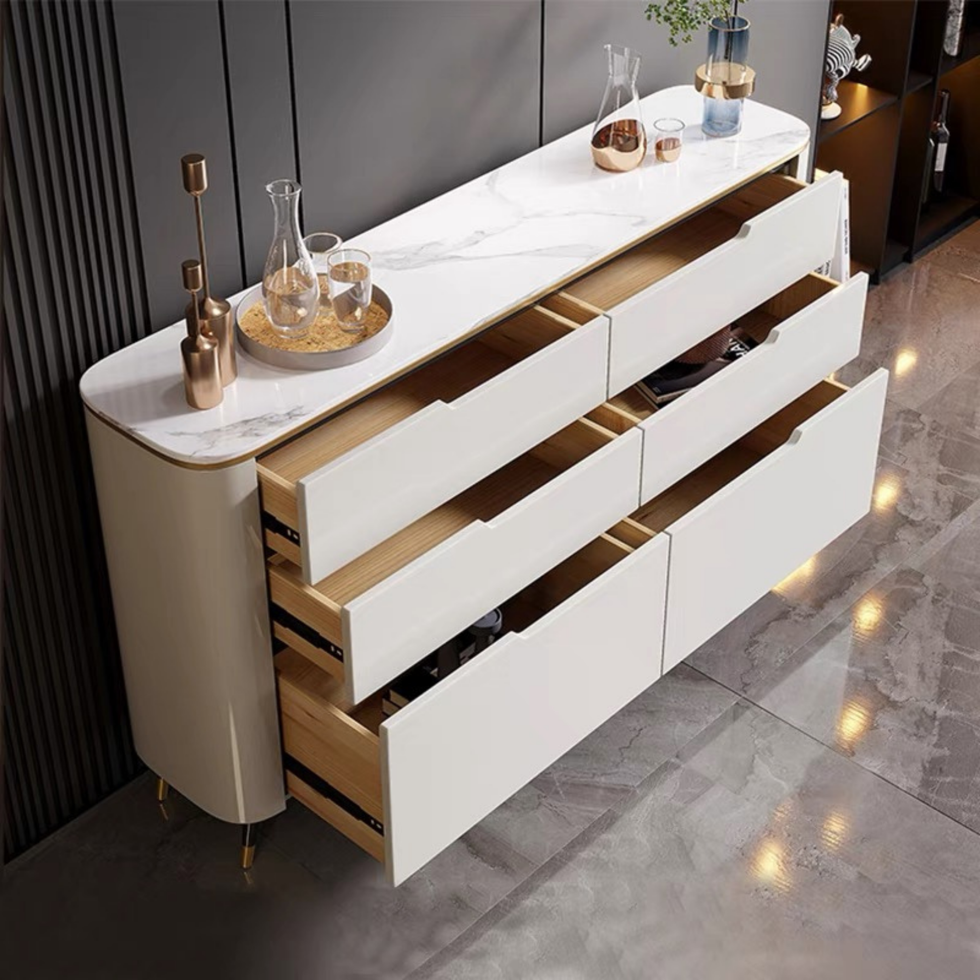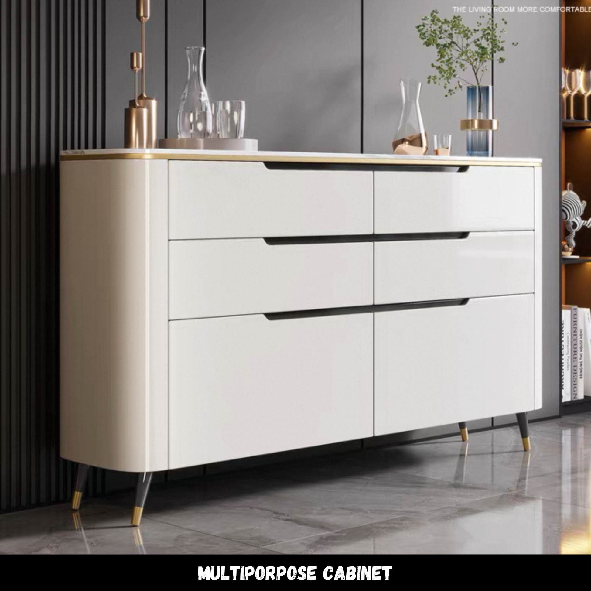 ตู้เก็บของ รุ่น CB0126 Imported full body rock slab Large capacity storage drawer Ivory piano lacquer finish Carbon steel one-piece feet