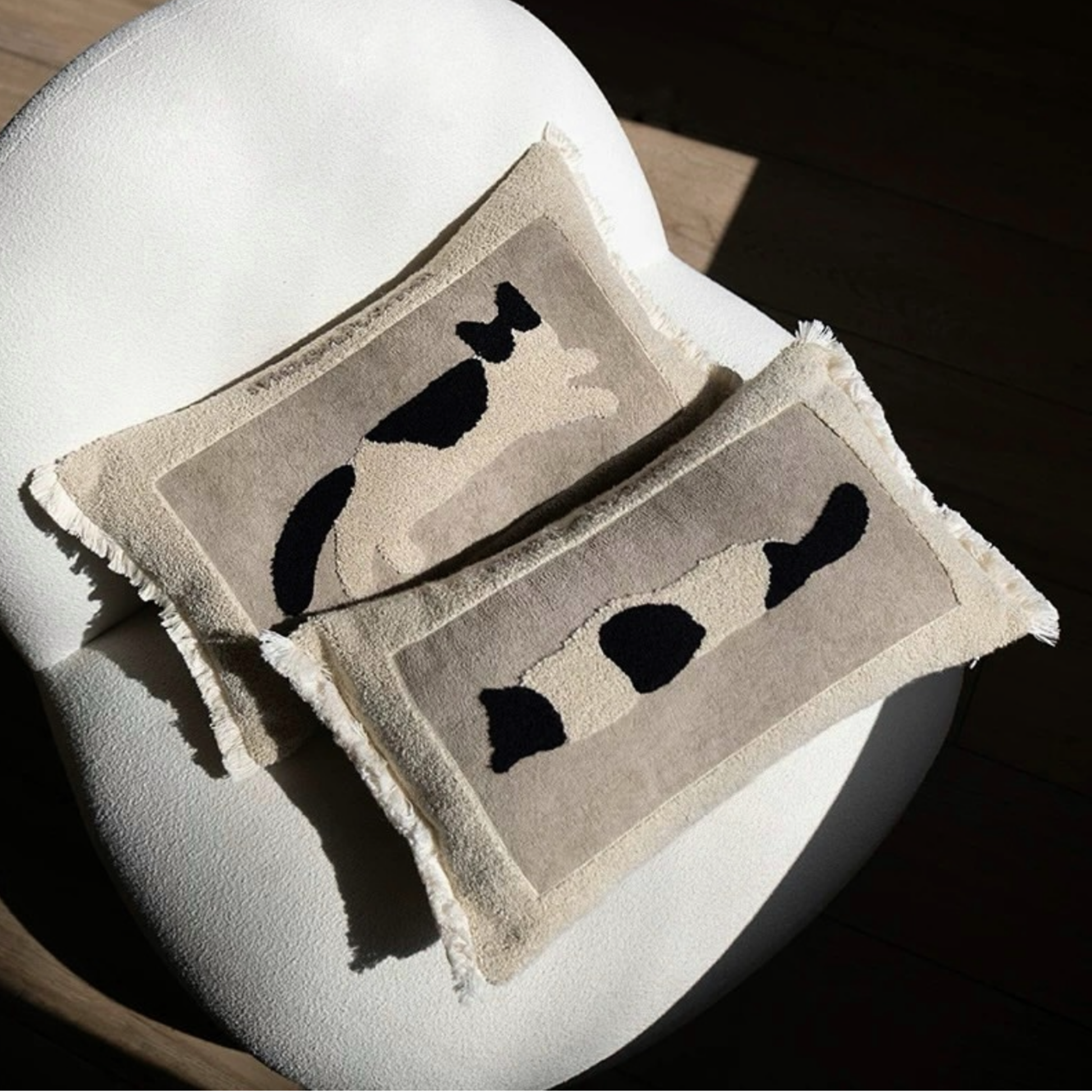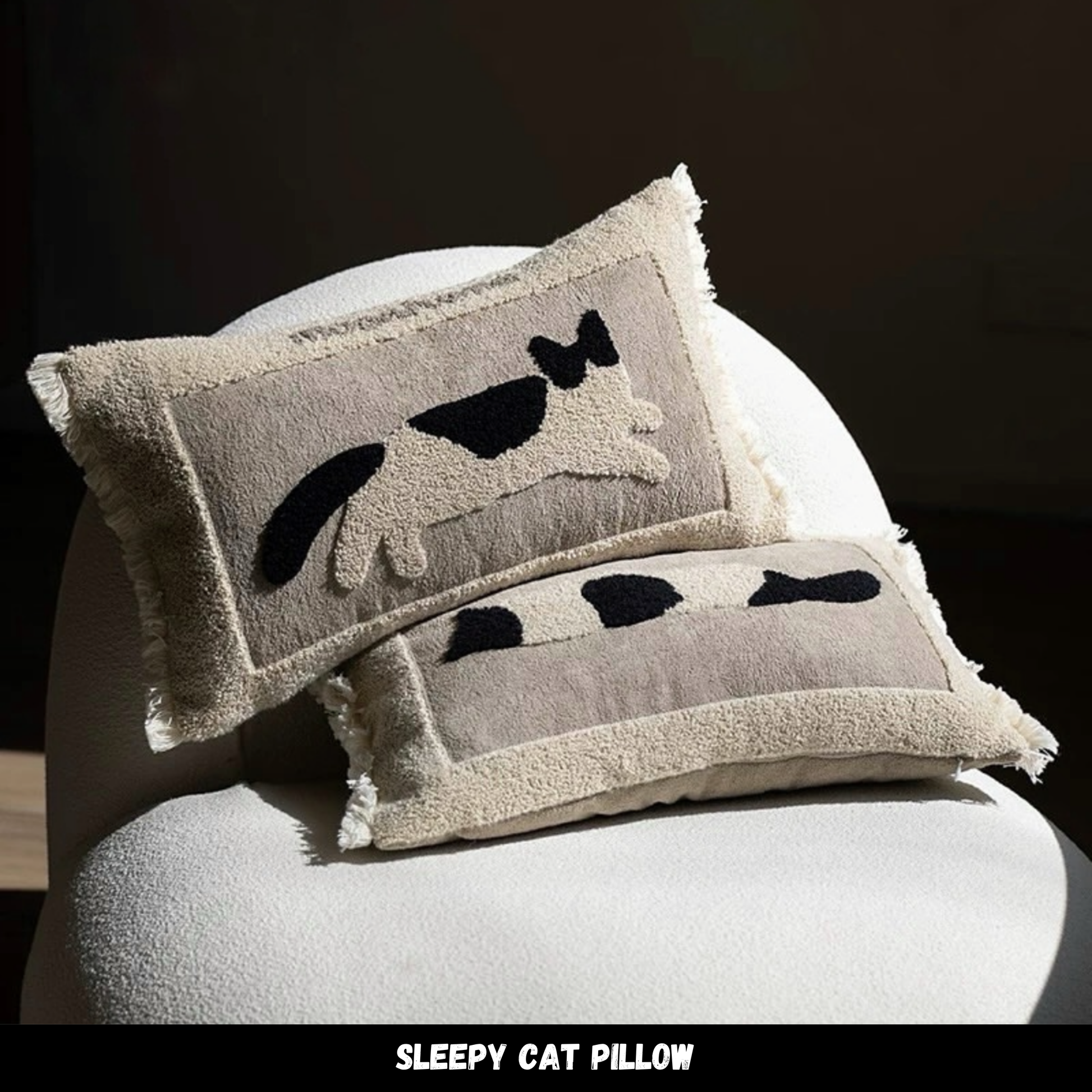 หมอนอิง PL012 A rectangular throw pillow featuring a sleepy cat pattern, made with quality woven fabric. Machine washable.