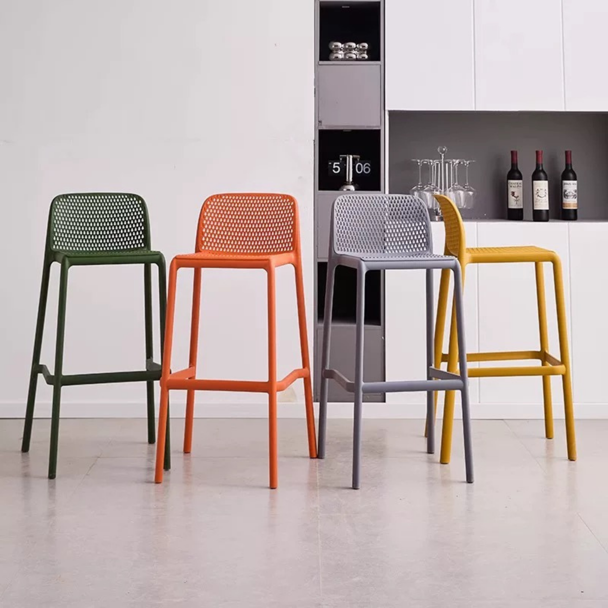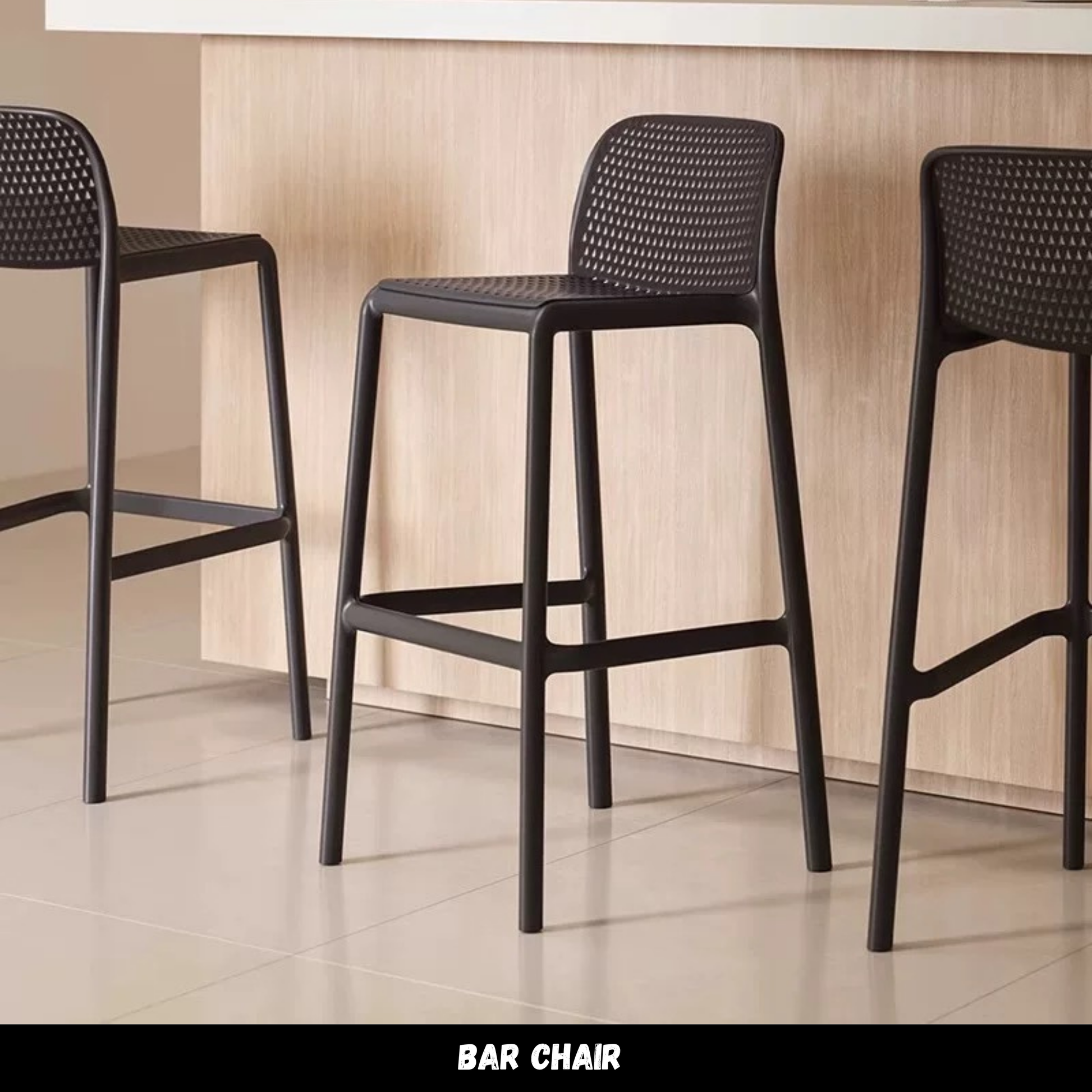 เก้าอี้ ( CH0388 ) Crafted from durable polypropylene with a perforated backrest for breathability. Ideal for kitchen islands, bars, or casual seating with a minimalist design.