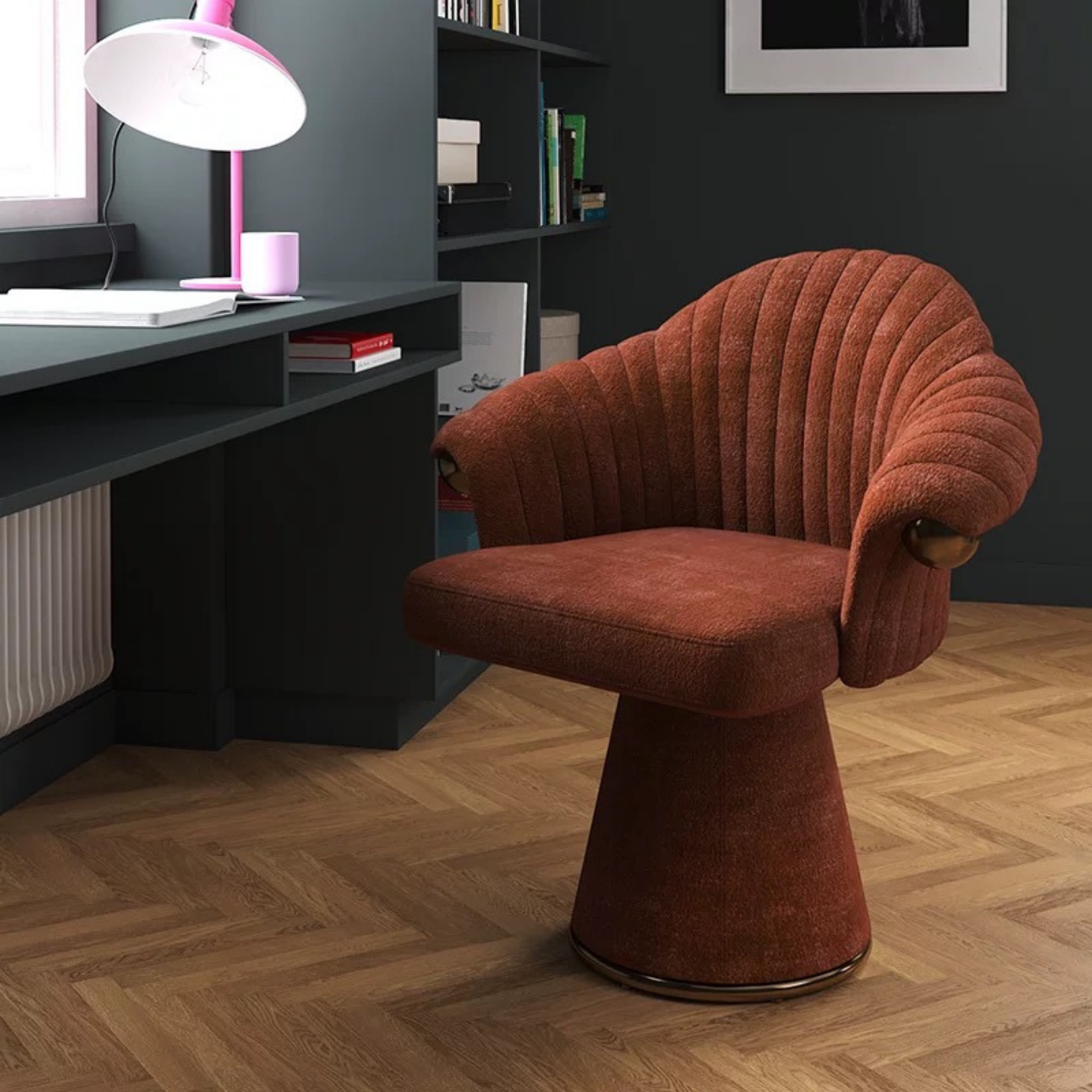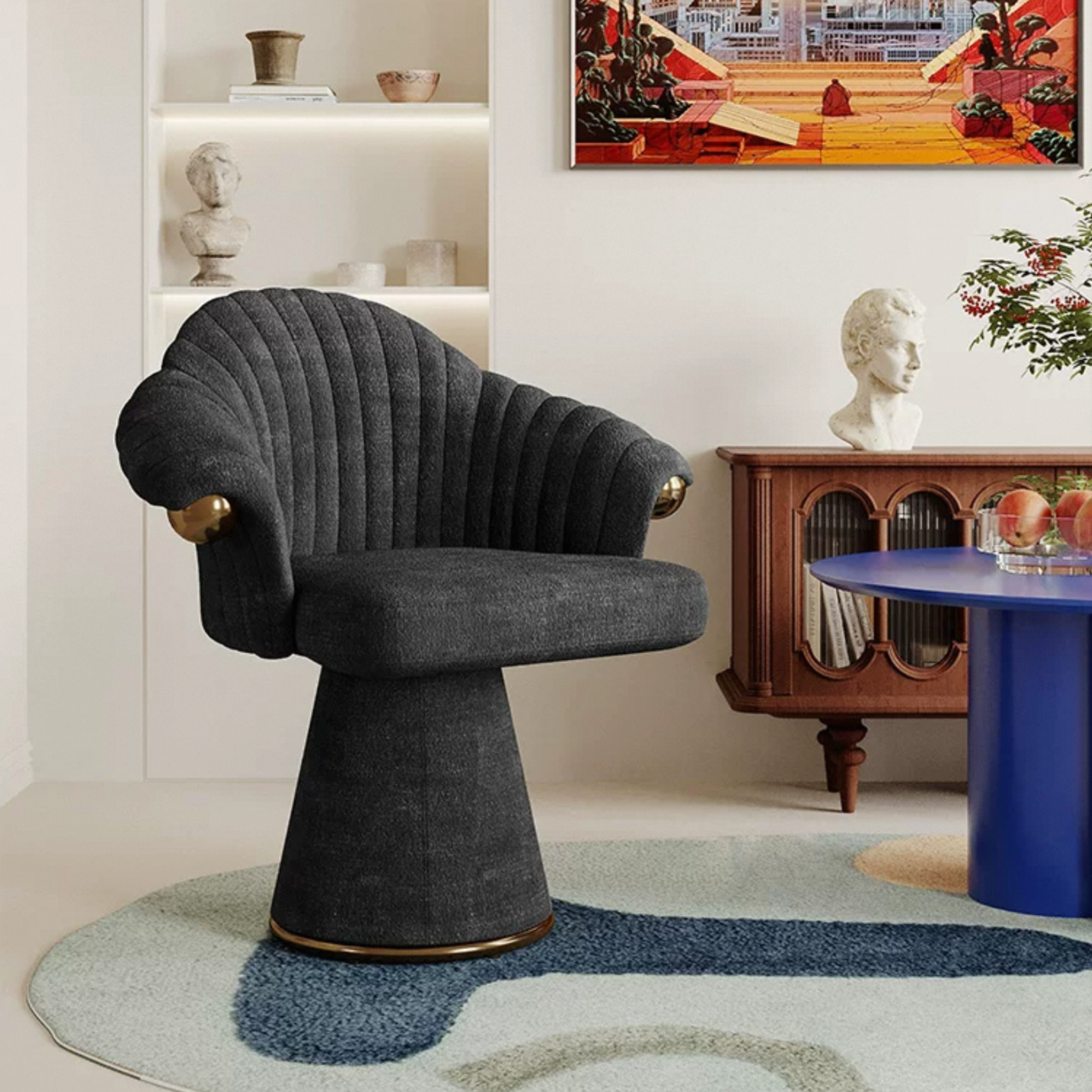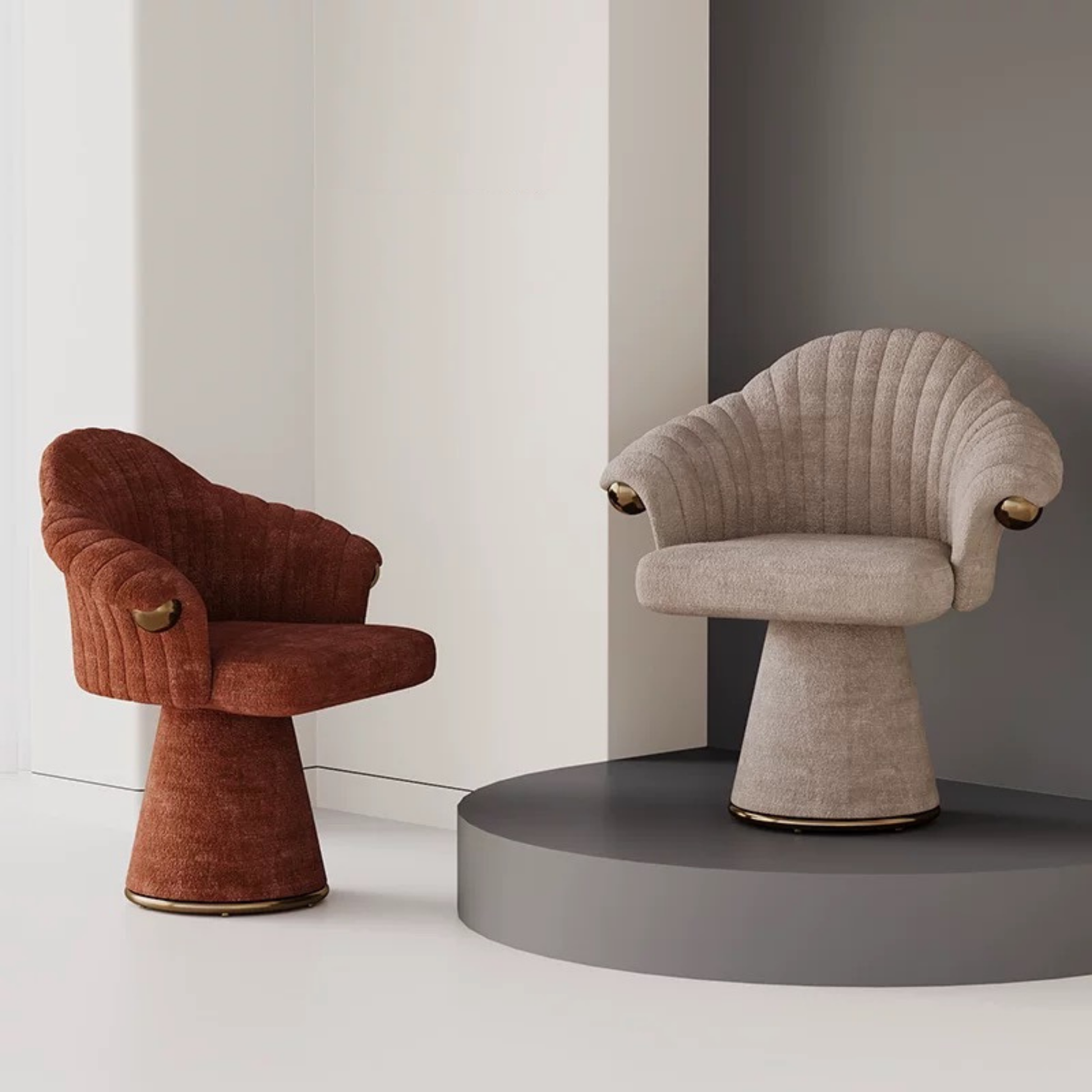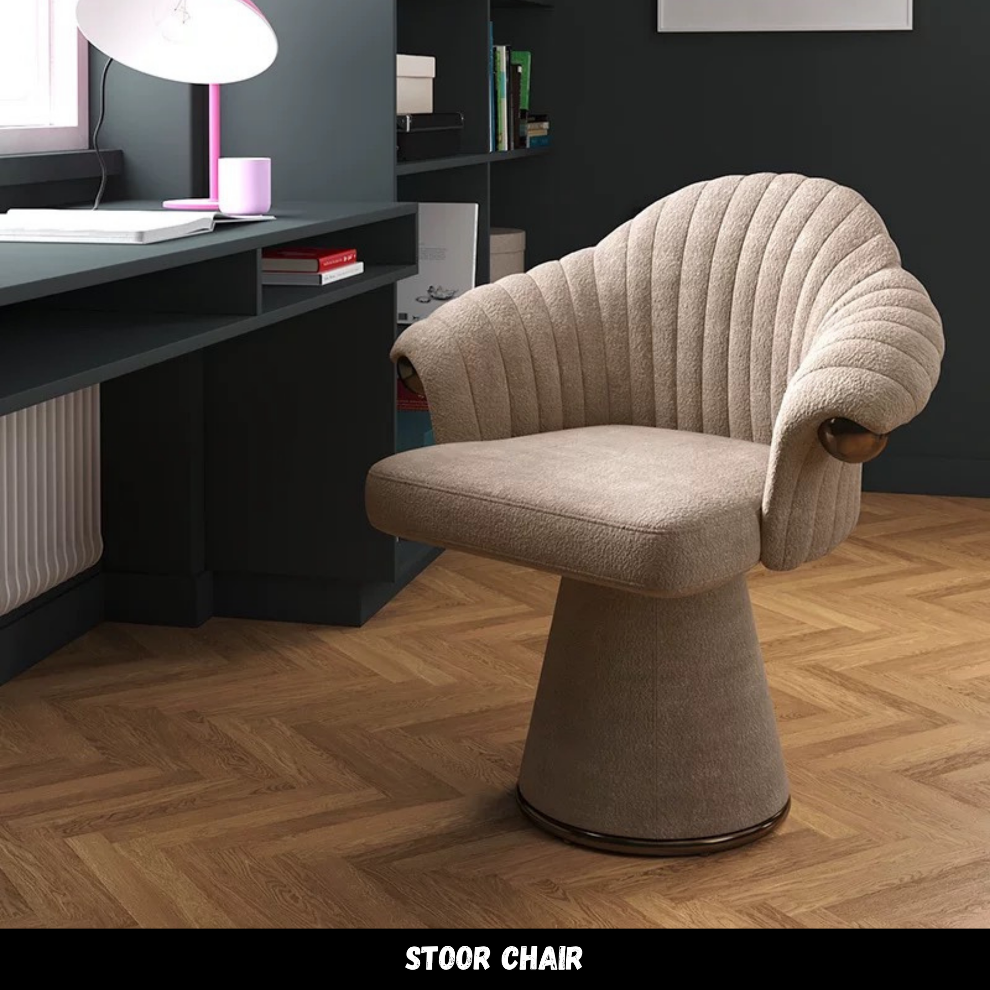 เก้าอี้สตูล รุ่น MLS0228 Elegant shell-inspired armchair Plush fabric with sculpted curves for comfort & style Perfect for living, lounge, or vanity spaces