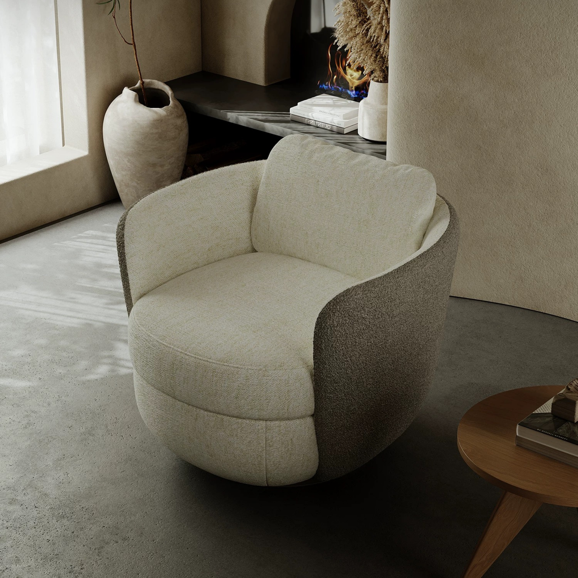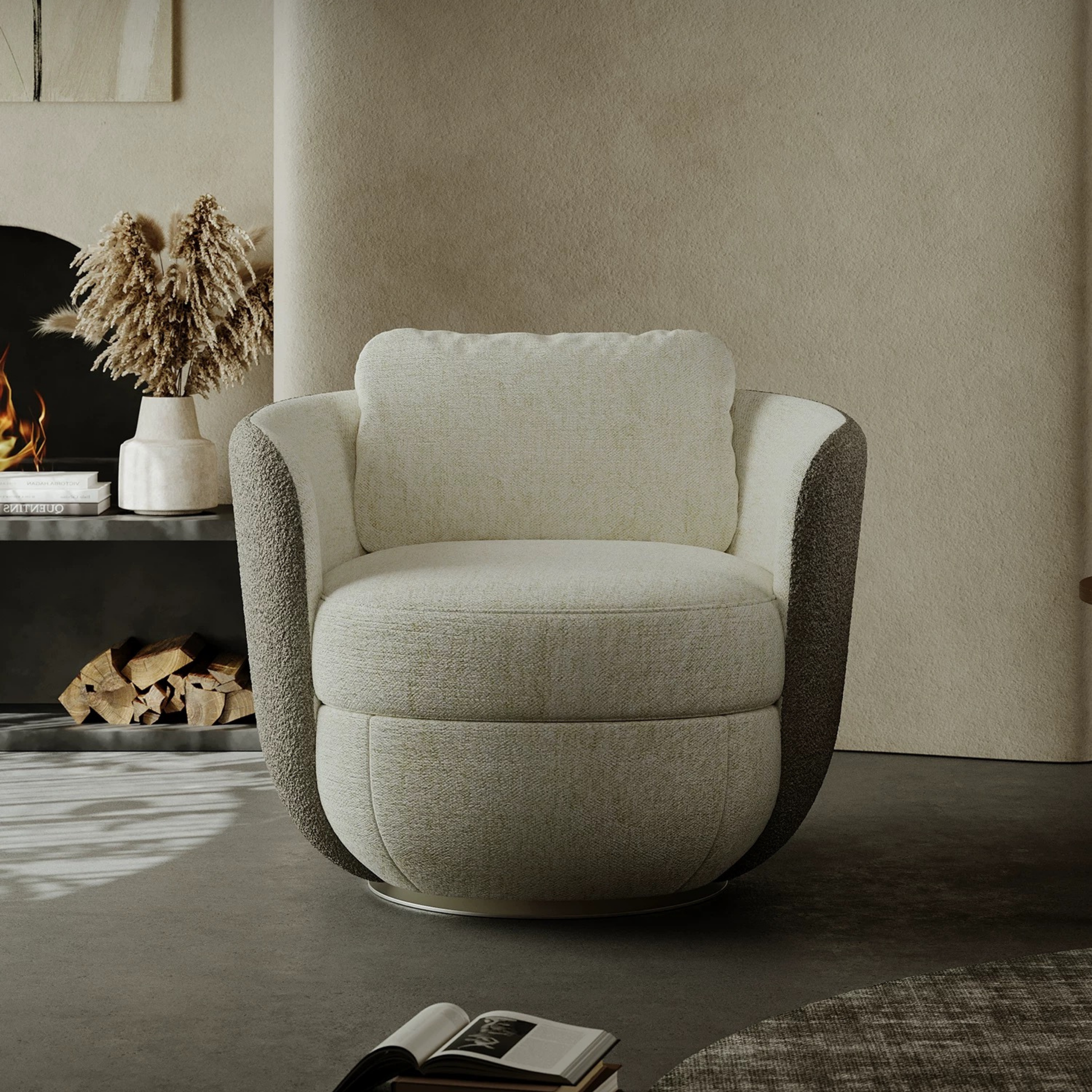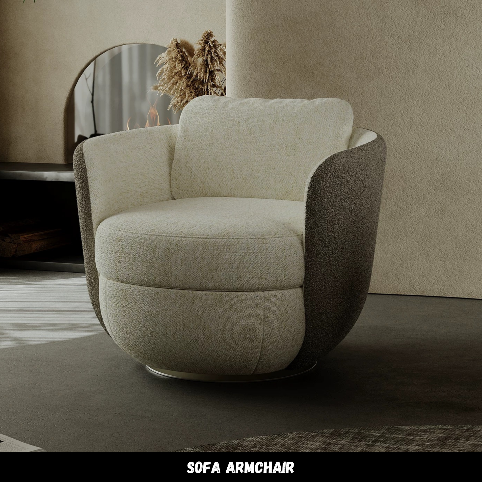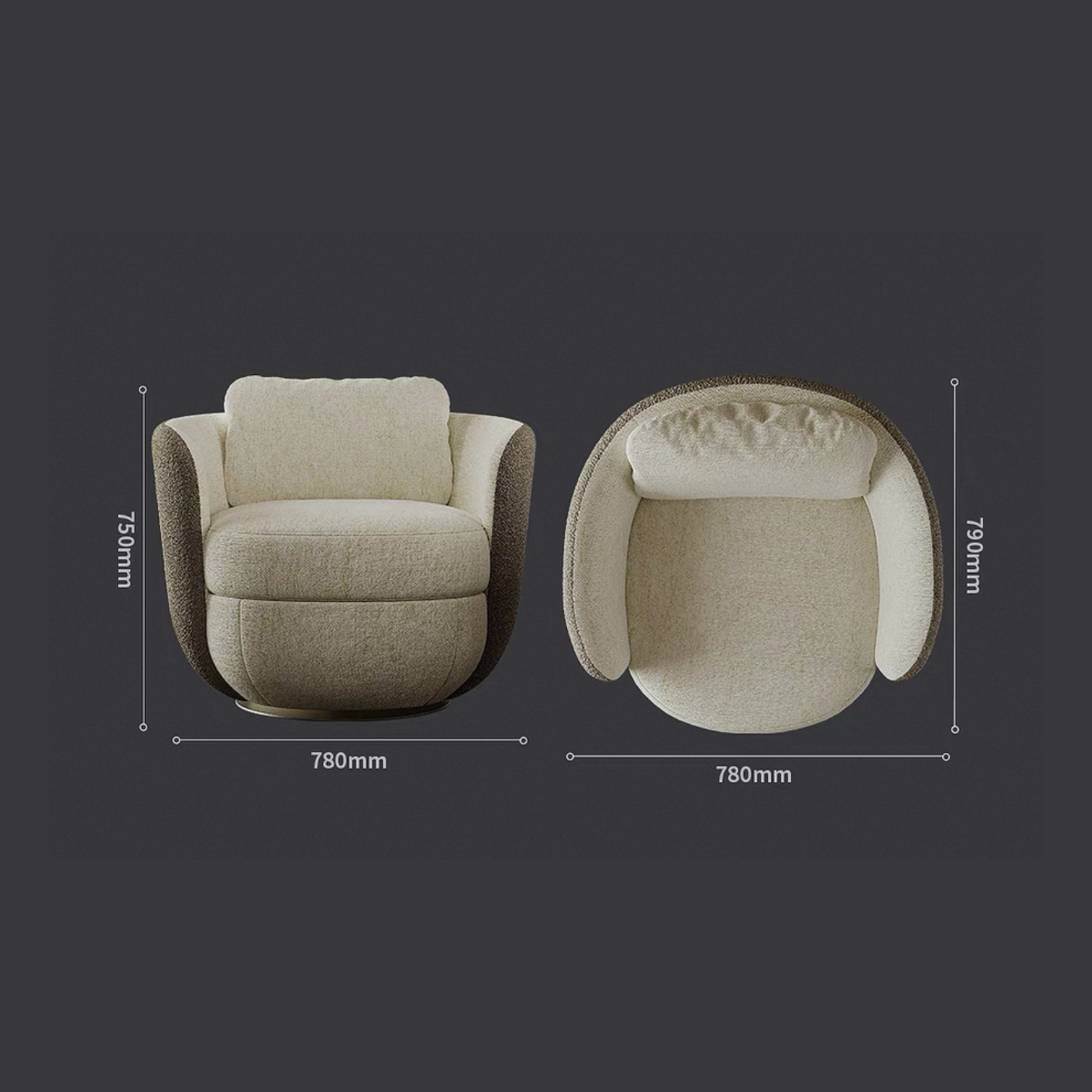 เก้าอี้โซฟาเลานจ์ MLS395 Elegant Italian-style armchair with a soft, rounded form Upholstered in dual-tone fabric for a modern cozy look Perfect for living rooms, reading corners, or bedrooms