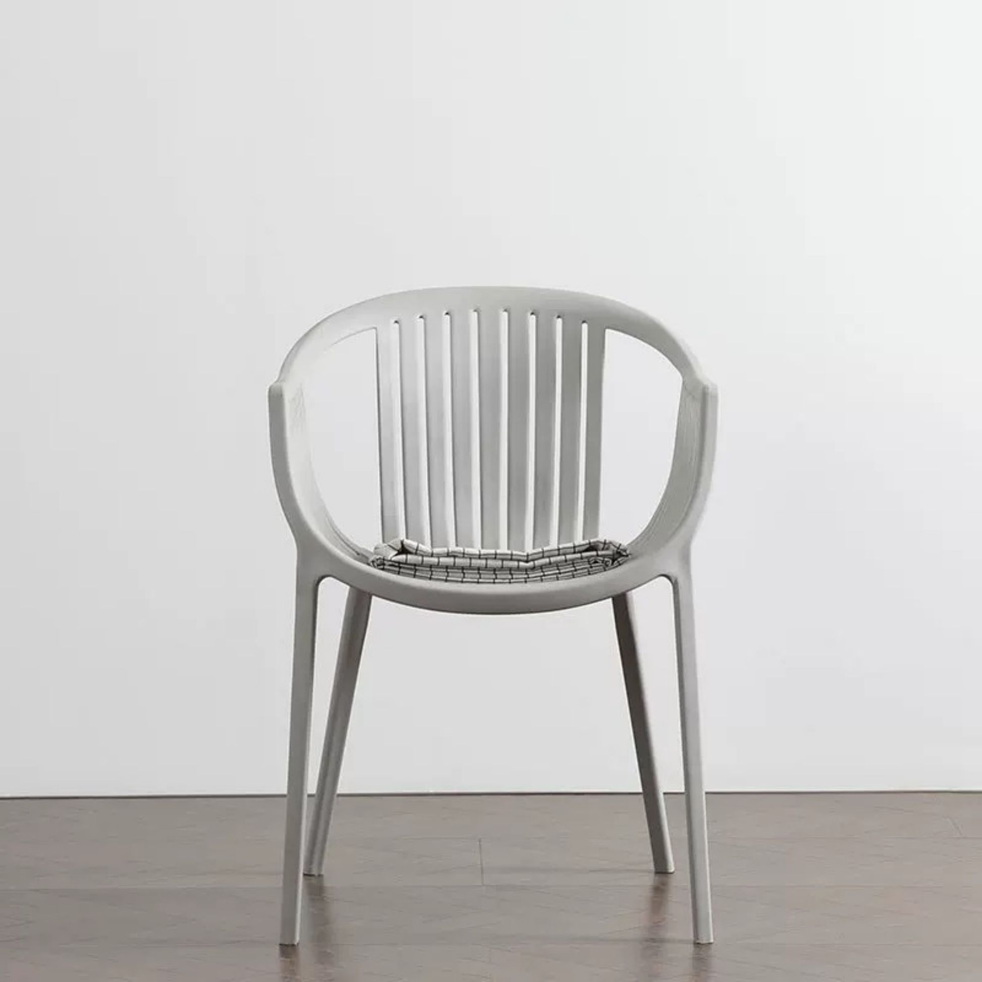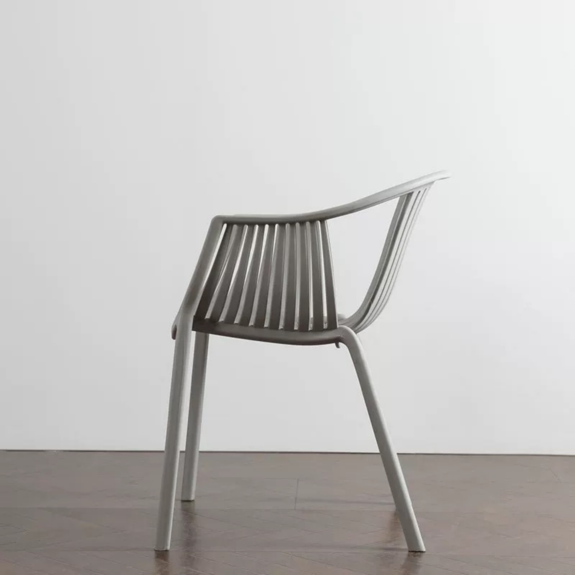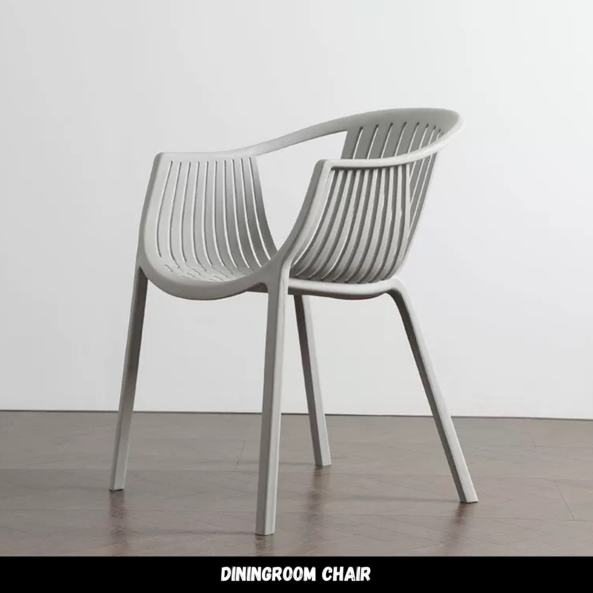 เก้าอี้ ( CH0105 ) Featuring a sleek curved silhouette with vertical slat detailing, this chair is made from durable plastic that’s lightweight yet sturdy. Suitable for both indoor and outdoor use, it’s easy to clean and perfect for modern minimalist spaces.