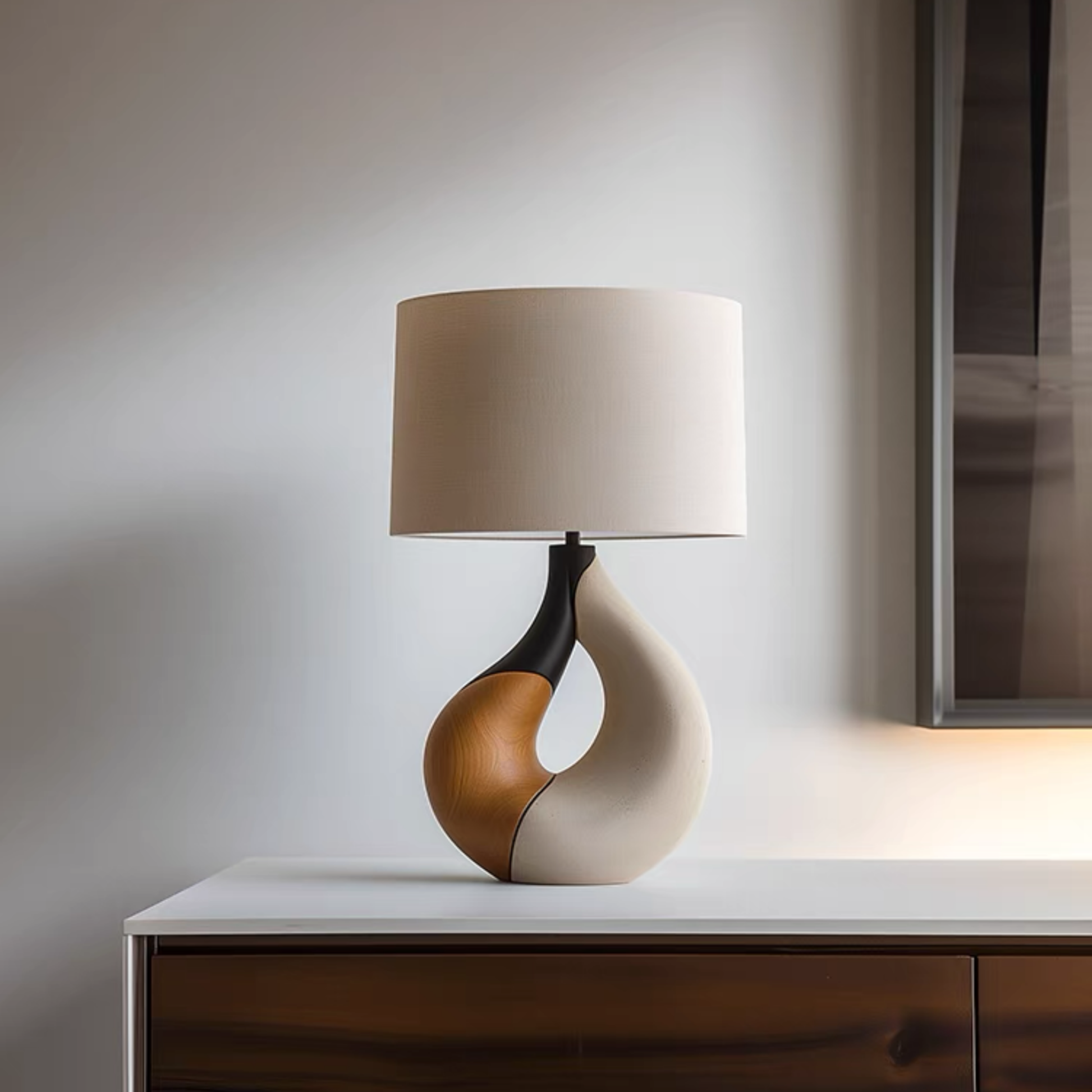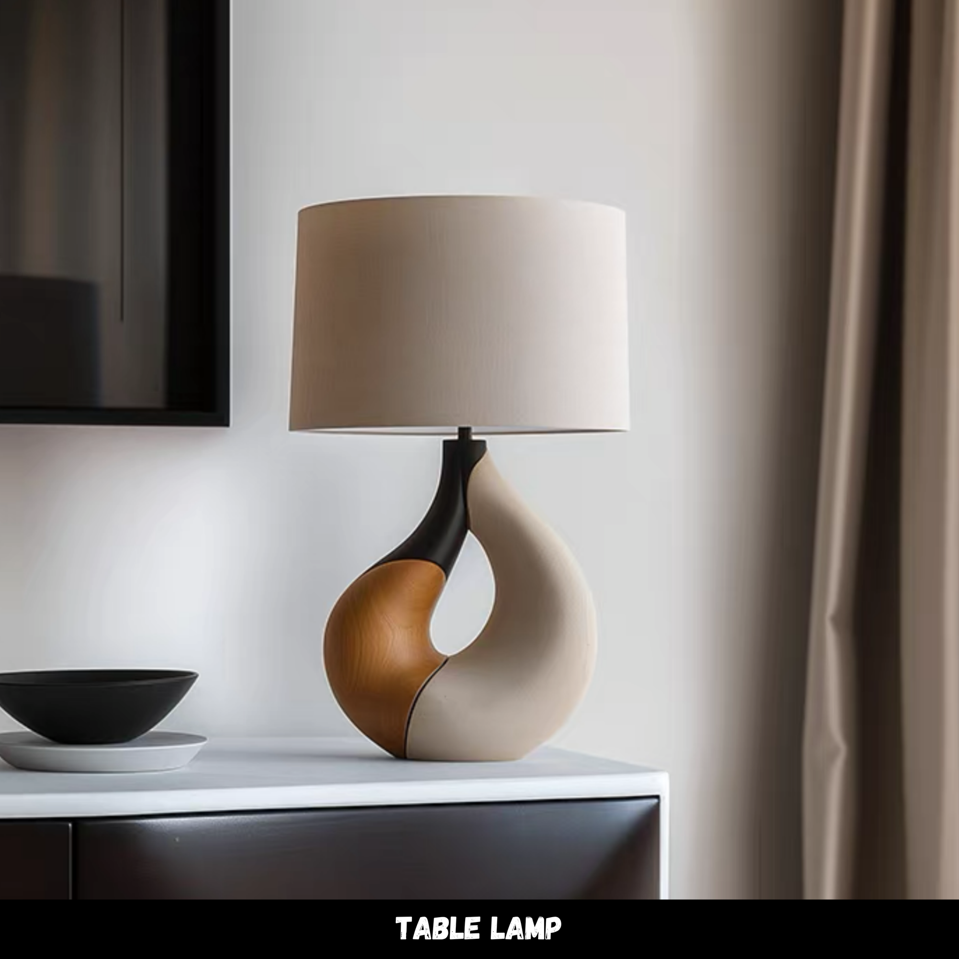 โคมไฟตั้งโต๊ะ LM0273 material: Walnut + Linen Lampshade