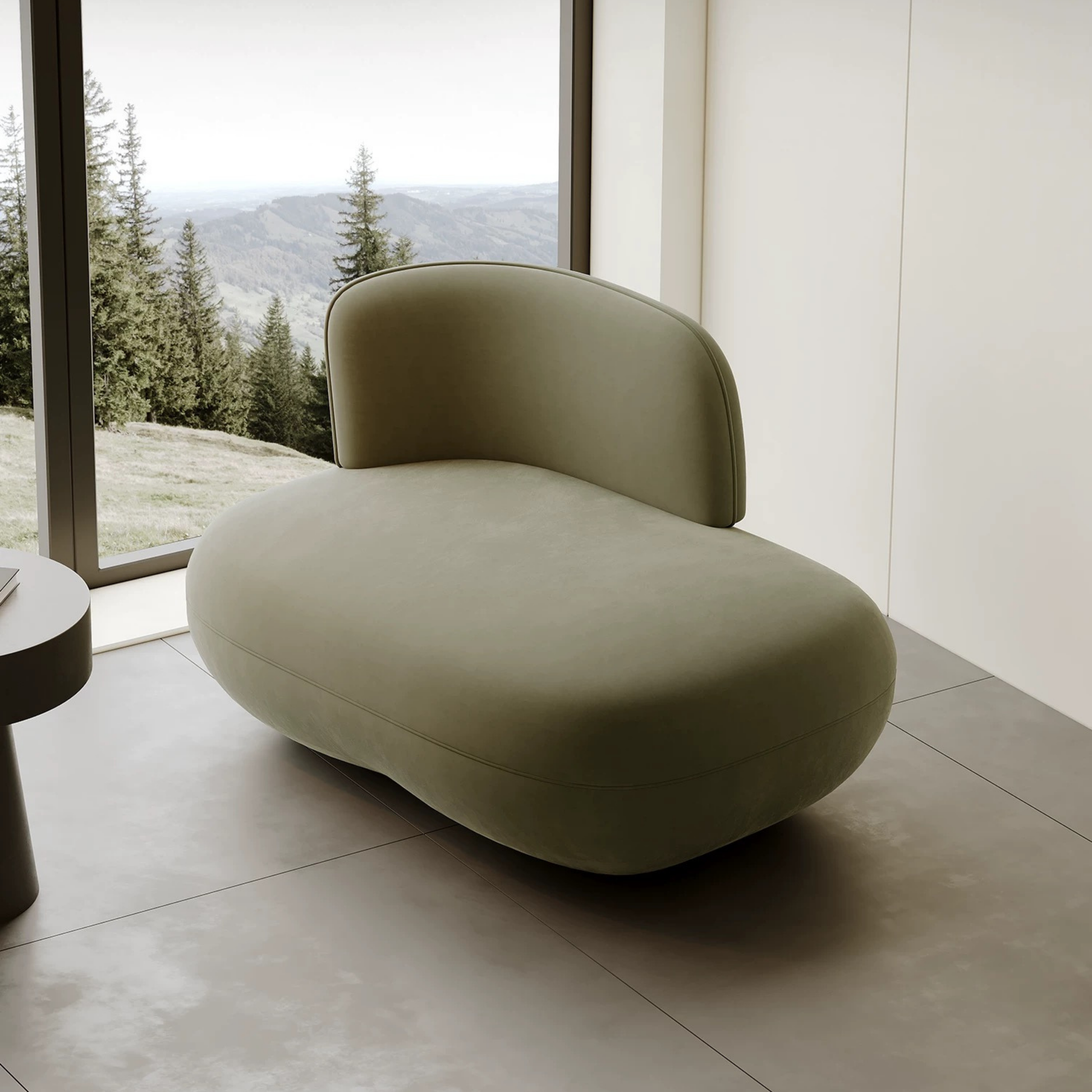 โซฟาเลานจ์ MLS162 Upholstered in soft olive green velvet with seamless rounded curves — a perfect piece for modern luxury living spaces. 🚛มีบริการประกอบสินค้าให้🛠
