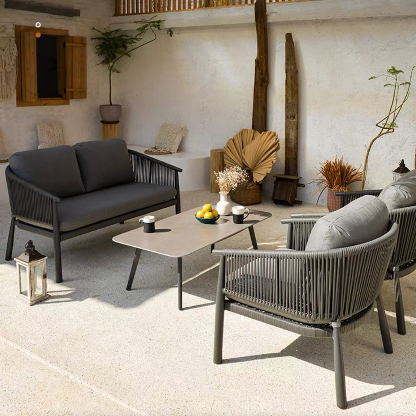 โซฟา outdoor OTB009 Outdoor sunbrella fabric Outdoor PE rattan with webbing pattern High density sponge Thickened aluminum alloy frame Anti-slip foot pad ( สินค้ามี 3 size 72 , 136 , 187 cm ) 🚛 มีบริการประกอบสินค้า🛠