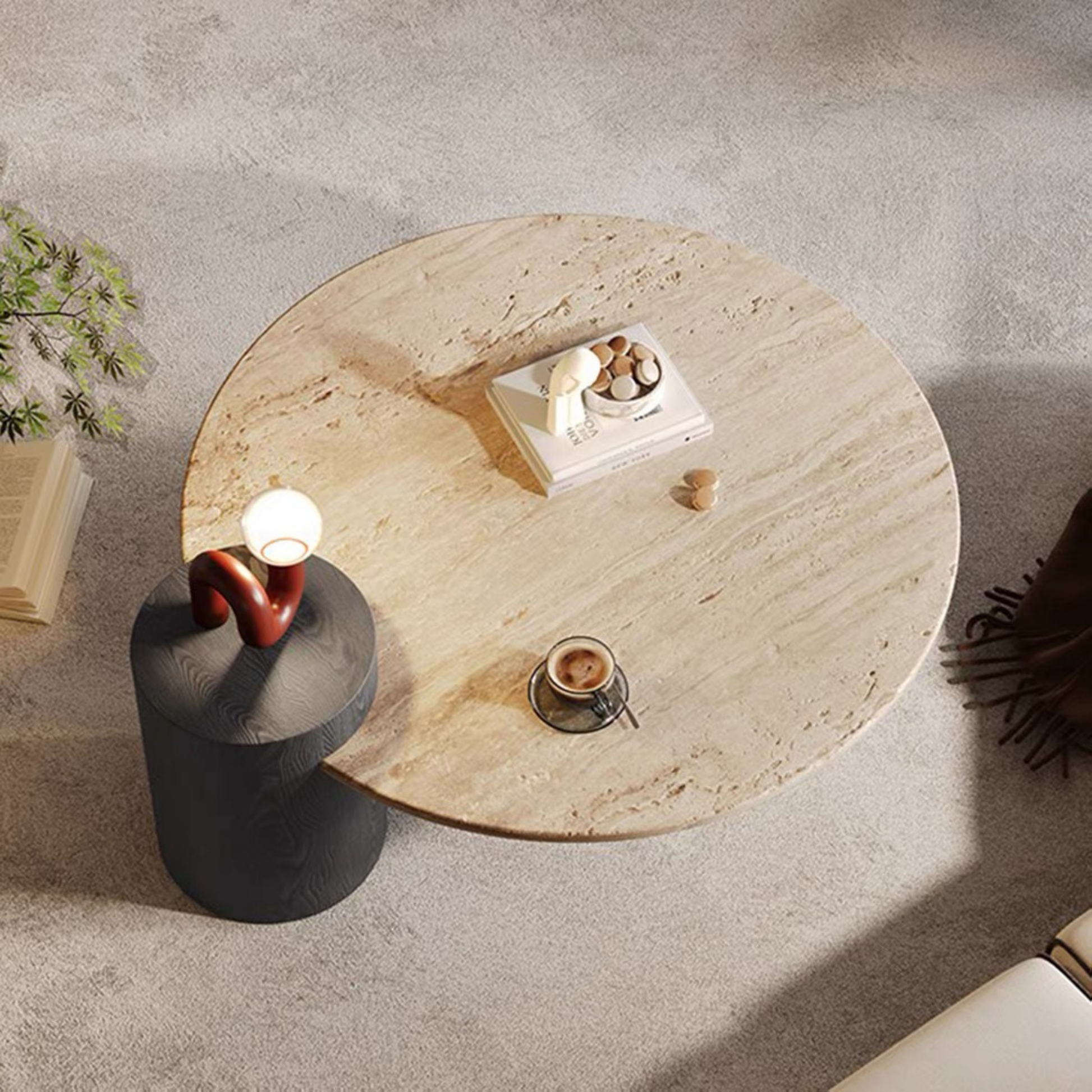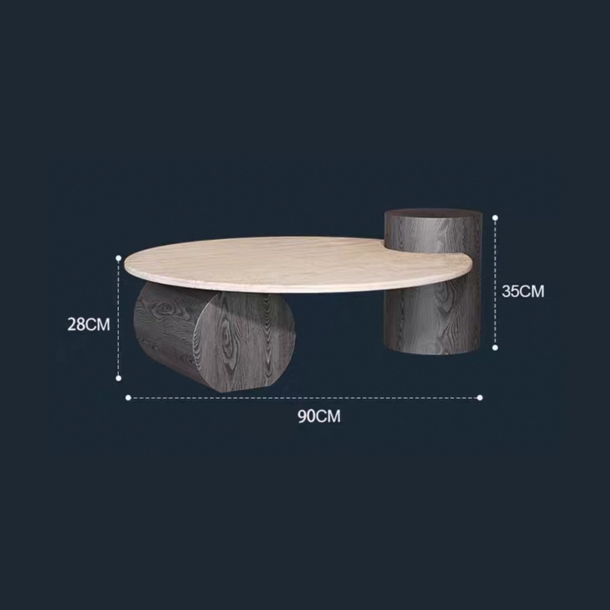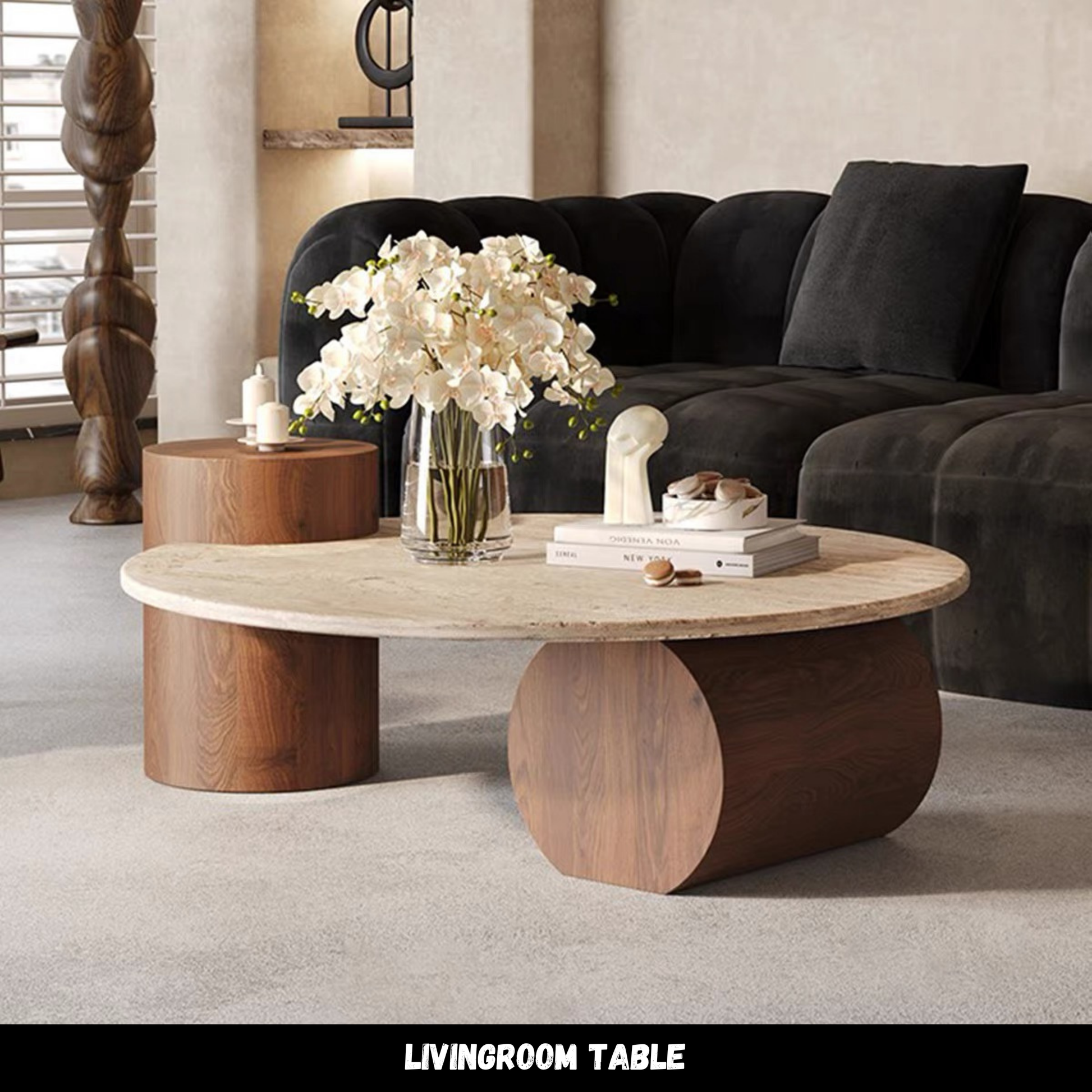 โต๊ะกลางโซฟา ( TB0148 ) Material: Travertine stone + Solid wood ( สินค้ามี 2 size 80 และ 90 cm