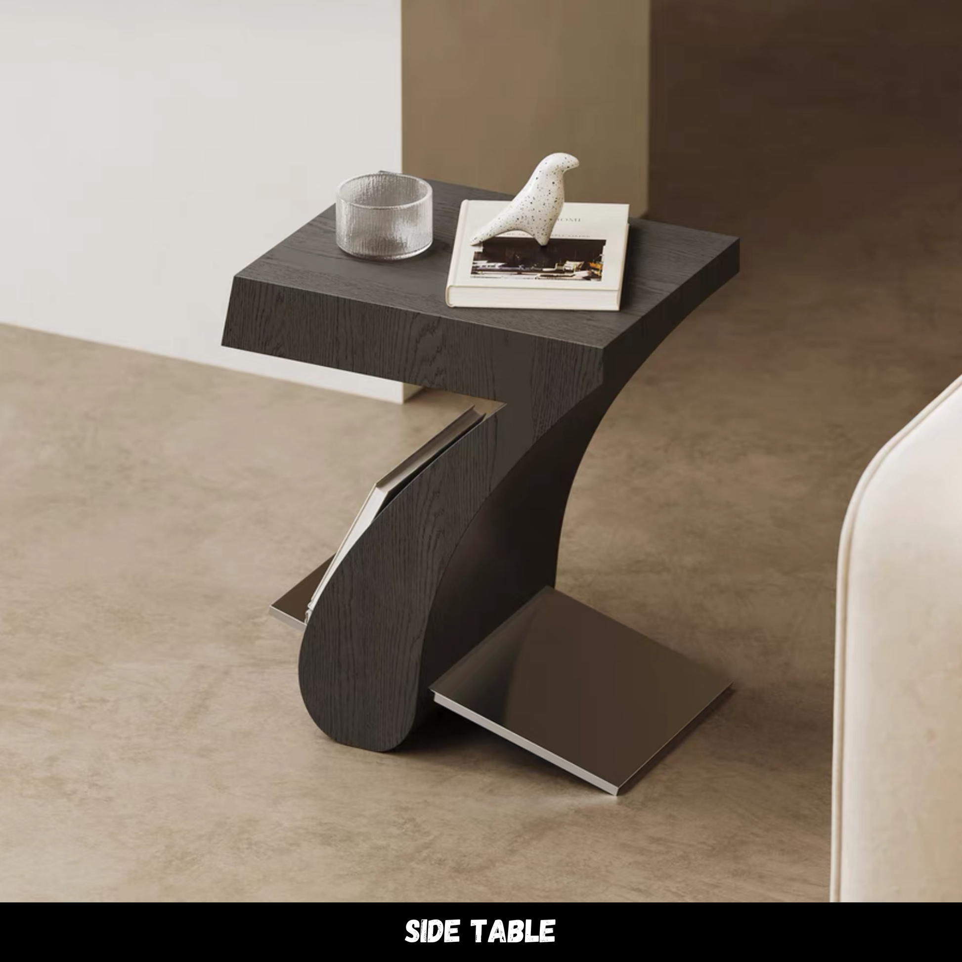 โต๊ะข้าง RL0173 North American imported Fas-grade smoked veneer (EO-grade solid wood multilayer board) Chromium-nickel austenitic stainless steel chassis
