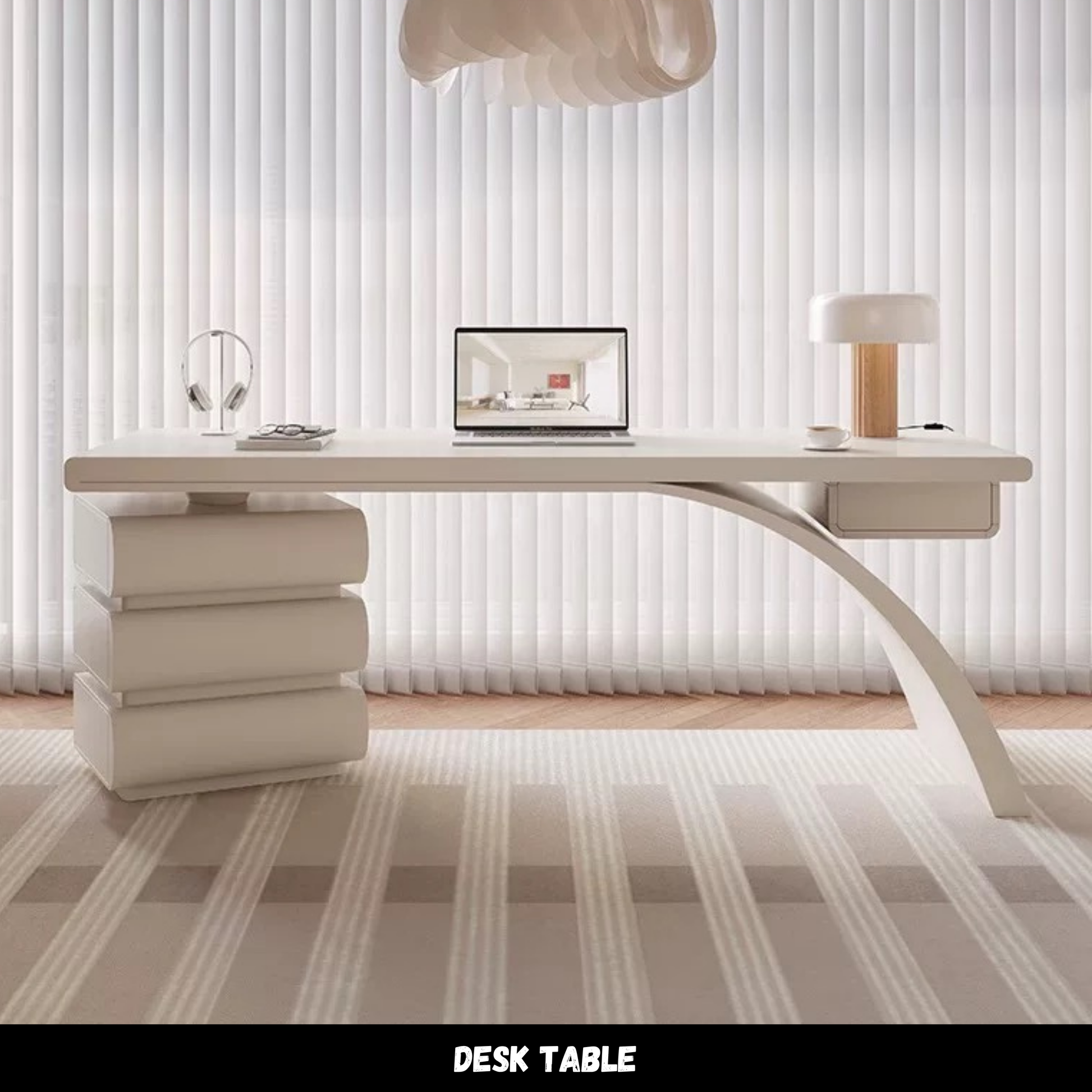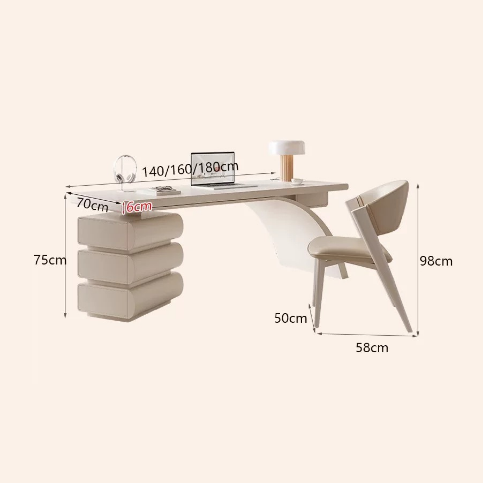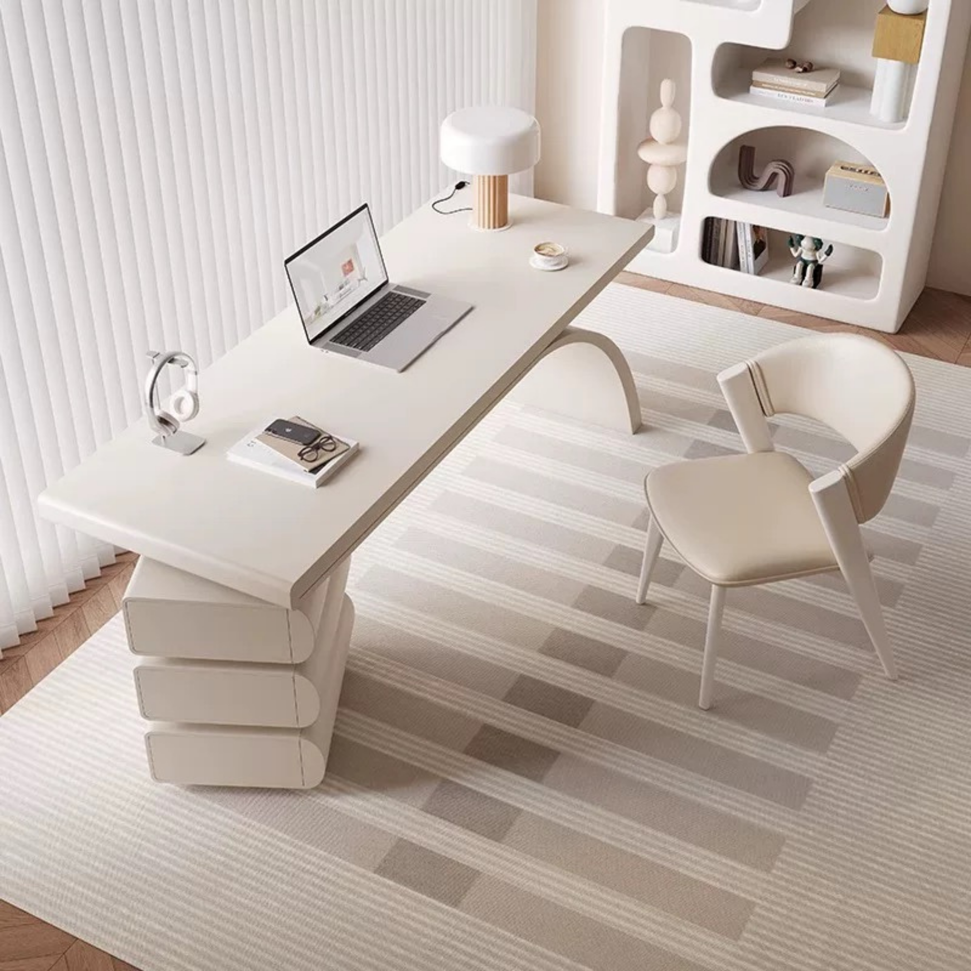 โต๊ะทำงาน TB225 modern desk featuring a sculptural design with rounded drawer columns and an elegant arched leg. Finished in a soft ivory tone, it blends seamlessly into contemporary interiors, offering both aesthetic appeal and practical workspace. Ideal for home offices or design studios. ( สินค้ามี 4 size 140 , 160 , 180 cm ) 🚛 มีบริการประกอบสินค้า🛠